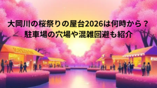 大岡川の桜まつり2026はいつ開催される?屋台は何時から?駐車場はある?そんな疑問をまとめて解決します。ライトアップ時間や蒔田公園イベントの日程、屋台の目安営業時間、混雑回避のコツまで、初めてでも迷わないポイントをわかりやすく解説します。こ...